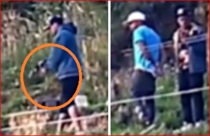 En las imágenes captadas por las cámras se puede ver a uno de los hombres manipulando el arma y luego la esconde.