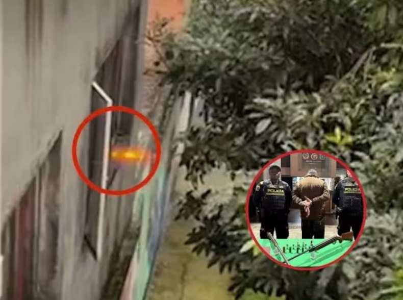 La Policía Metropolitana de Bogotá fue alertada por varios residentes del sector, quienes llamaron a la línea de emergencias 123 tras escuchar detonaciones continuas provenientes de la casa del sujeto y observar el arma asomada por la ventana del inmueble.