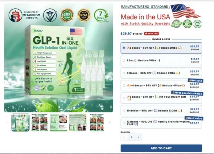 Un ejemplo particularmente agresivo de falsificación son las perlas adelgazantes PEAKA GLP-1, que se comercializan con varios nombres, como “gotas adelgazantes” y “perlas líquidas”. El producto afirma falsamente que es equivalente a medicamentos recetados aprobados por la FDA, como: Ozempic y Wegovyindicado para el control de azúcar en sangre y control de peso. Estas afirmaciones carecen de validación científica y aprobación regulatoria.