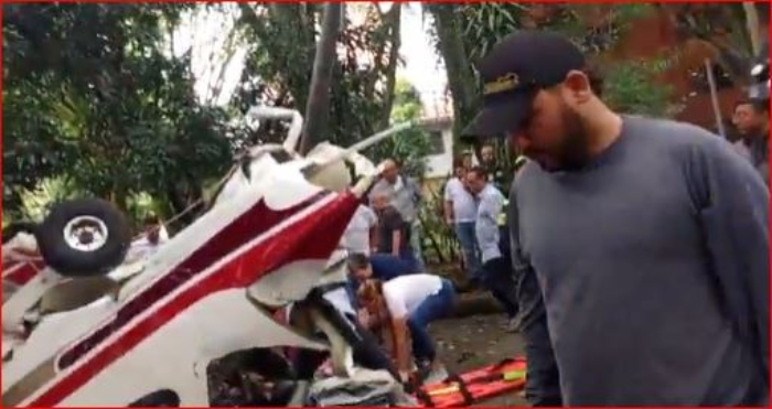 Avioneta se accidente en el Barrio los Laureles de Medellín y cayó a pocos metros del Estadio Atanasio Girardot, dos heridos.
