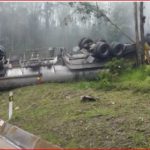 Según los Bomberos «Un carro tanque sufrió un volcamiento total que a la hora impide el paso en la vía»