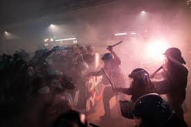 En un momento en que algunos Los manifestantes lanzaron fuegos artificiales a la policía, la policía respondió con porras, gases lacrimógenos y agua a presión..