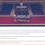 El Ministerio de Exteriores en un comunicado que el Gobierno de Colombia «no tiene injerencia en los asuntos internos de los demás países y respeta la soberanía del hermano país de Venezuela»