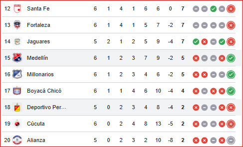 Medellín llega a este partido en la casilla 15 y con solo 5 puntos, con un partido ganado y tres perdidos.