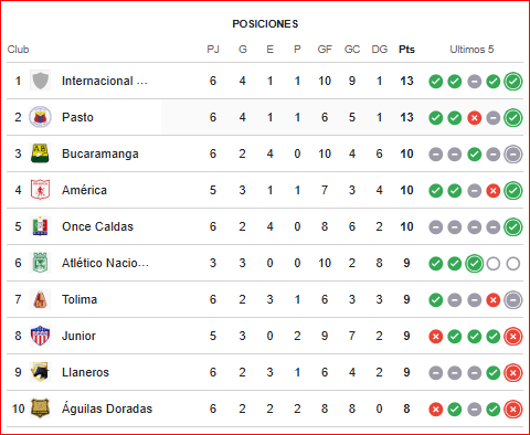 Esperando que en este nuevo partido puedan sumar puntos y ascender en la clasificación en la que el líder de la tabla en Internacional tiene 13 puntos y los mismos que Deportivo Pasto.