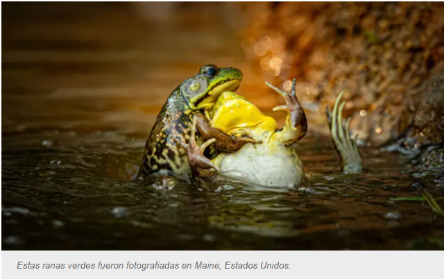 Grayson estaba fotografiando ranas verdes en Maine, EE. UU., y no se dio cuenta de que había capturado este momento hasta que regresó a casa.