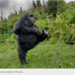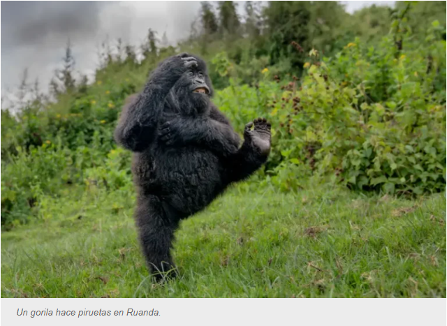 Esta foto ganadora de un gorila mostrando sus habilidades en Ruanda fue tomada por Mark Meth Cohn.