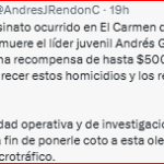 Indepaz confirmó el triple homicidio en el municipio de El Carmen de Viboral, Antioquia, y entre las víctimas está el líder juvenil, Andrés Giraldo.
