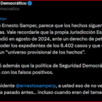 Samper elogió a Oviedo y aseguró en un mensaje en su cuenta en X «valiente y muy honesta la actitud»