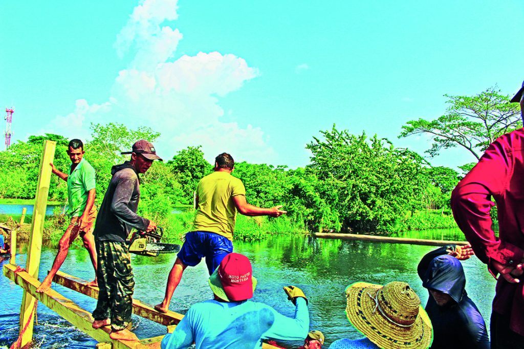 Imagen 3. La comunidad de la vereda Latal construye temporalmente un puente para tener acceso hacia San Pelayo y Cereté ,marzo 2026.