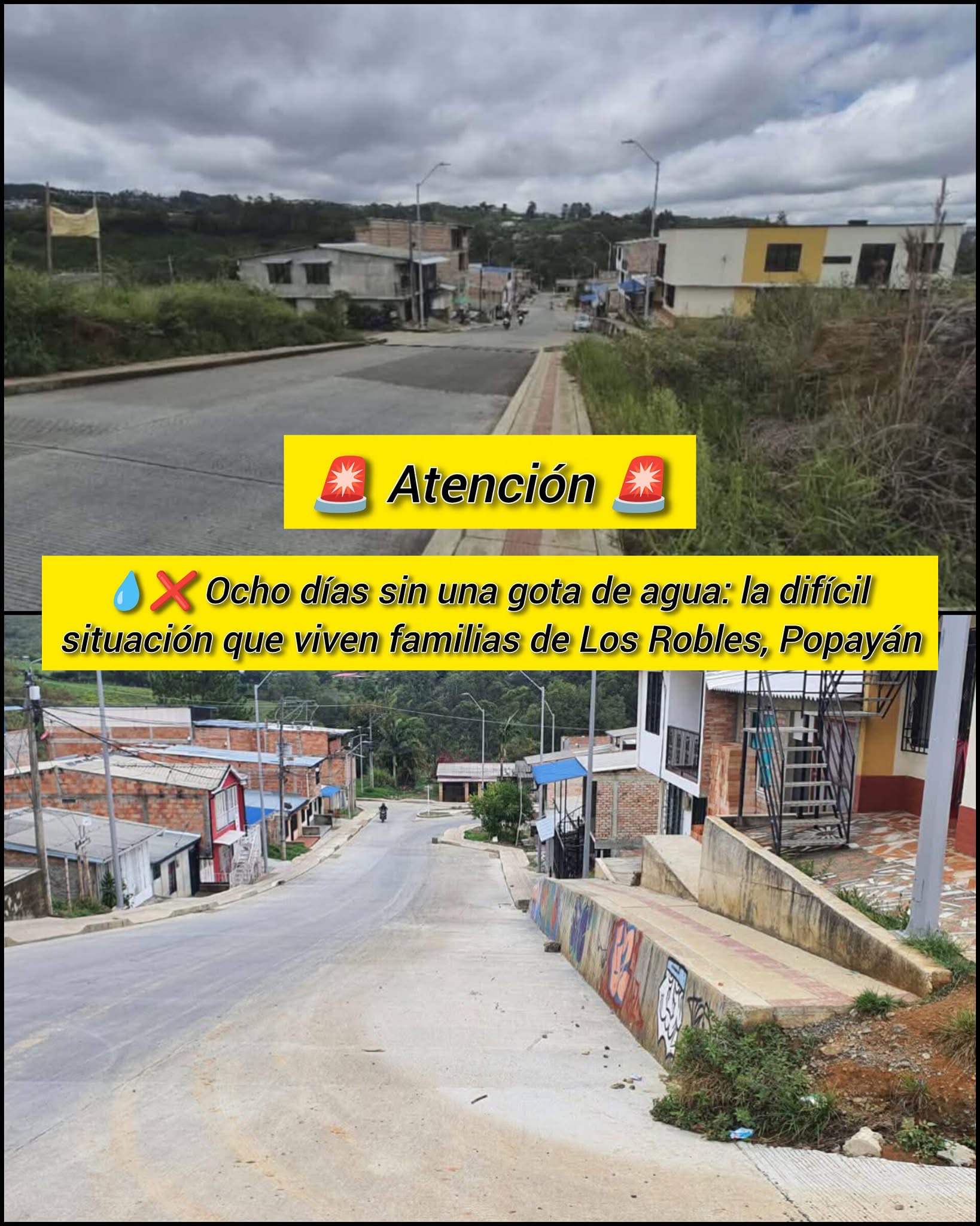 La crisis por la falta de agua en la URBANIZACIÓN LOS ROBLES, en Popayán, ya completa más de ocho días y escala a un pulso político.