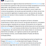 Por parte de la Agencia Nacional de Minas informó «Ya fueron ubicados los 2 cuerpos restantes, se trabaja en su recuperación».